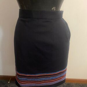 Brooks Brothers Navy Blue embroidered stripe bottom pencil skirt, size 10