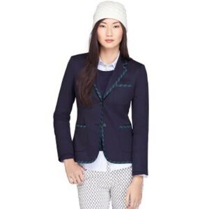 Brooks Brothers Navy Wool Blend Blazer with Green Piping Accents Size 12