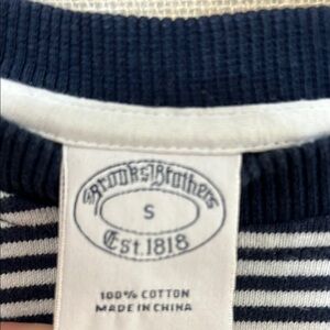 Stylish nautical navy and white striped Brooks Brothers sweatshirt. Perfect for casual wear.