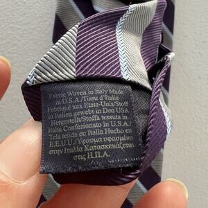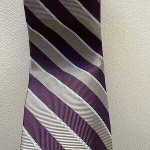 Brooks Brothers Necktie Men's Purple Grey White Striped Diagonal