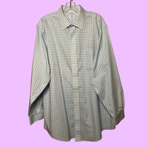 Brooks Brothers No-Iron Button-Down Shirt Size 17 1/2-4/5 white w/blue checkers. Like new condition. No wearing or fraying at the cuffs. Extra buttons still attached.