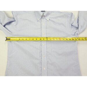 The Brooks Brothers Non Iron All Cotton Size 15.5 32/33 Blue White Stripe Shirt is a classic and colorful dress shirt for men, perfect for various occasions such as weddings, parties, or formal events. Made from 100% cotton with a striped pattern in blue and white, this shirt features a button-down collar and long sleeves with barrel cuffs. It is easy to care for with its non-iron feature and machine washable fabric wash. The regular fit and size 15.5 neck make it a versatile and stylish addition to any man's wardrobe, representing the timeless quality and style associated with Brooks Brothers.