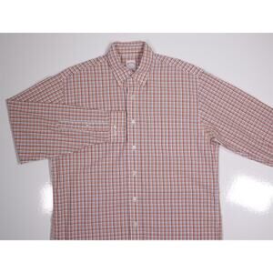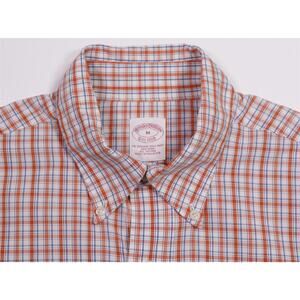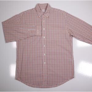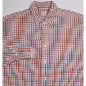 Brooks Brothers Non-Iron Orange Blue Plaid Button-Up Dress Shirt Medium
