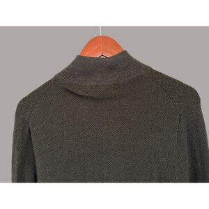 A timeless classic, this Brooks Brothers merino wool sweater radiates understated elegance. The olive hue and herringbone texture evoke a sense of refined adventure, while the half-zip neckline adds a touch of versatility. Crafted to envelop you in soft warmth, it feels like a gentle embrace on crisp days.