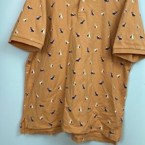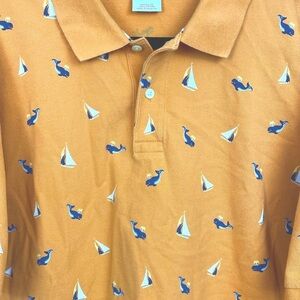 Brooks Brothers Orange Polo Shirt with Sailboats and Whales size XL