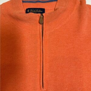 Stylish zip-up sweater by Brooks Brothers. Vibrant orange color. Perfect for layering.