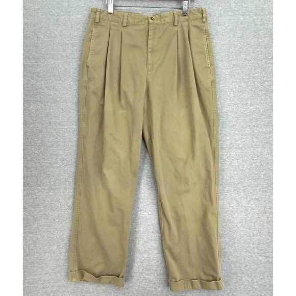 Brooks Brothers Pants Mens 36 X 30 Khaki Pleated Front Cuffed Straight Leg