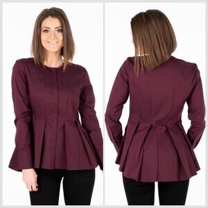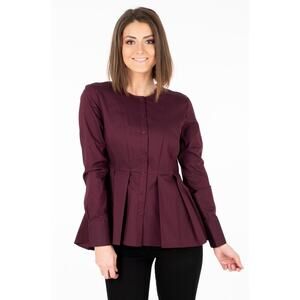 Brooks Brothers Peplum Pleated Long Sleeve Button Up Shirt