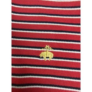 Brooks Brothers Performance Knit Men's XL Red w/White, Blue Striped Polo Shirt Cotton