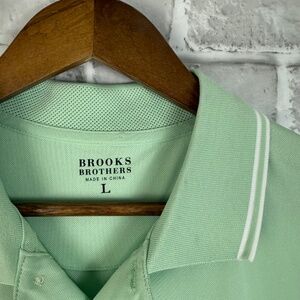 Brooks Brothers Performance Polyester Mint Green Collared Polo Shirt Mens LARGE