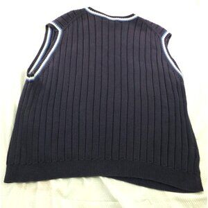 Brooks Brothers Pima Cotton Ribbed Sweater Vest Navy Blue White Trim Preppy Clas