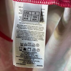 Vibrant floral dress with pink and green pattern. Features a contrasting pink collar. Three-quarter sleeves.