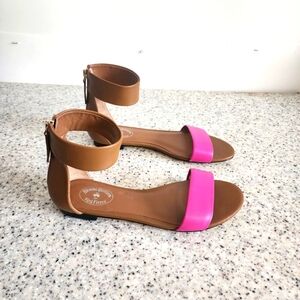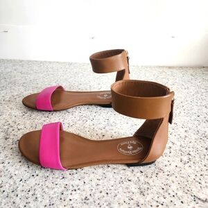 Brooks Brothers Pink and Tan Ankle Strap Sandals Size 7.5