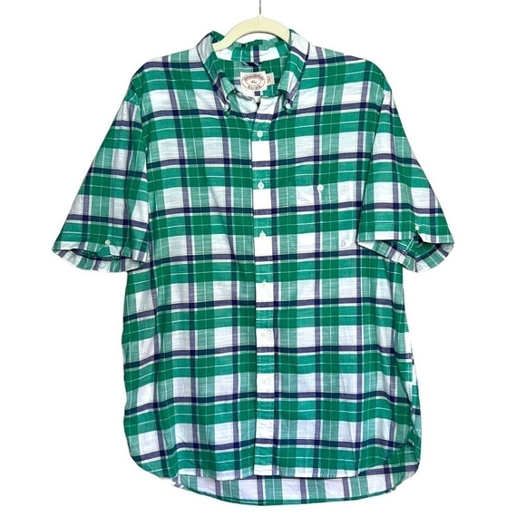 Brooks Brothers Plaid Blue and Green Short Sleeve Button Down 100% Cotton XL