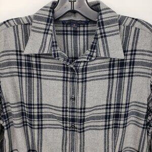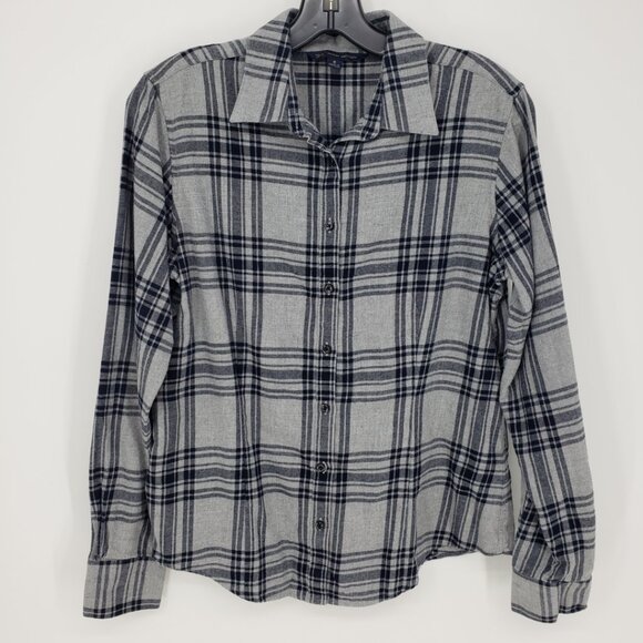 Brooks Brothers Plaid Flannel Button Down Shirt Top 8 Womens Long Sleeve Gray