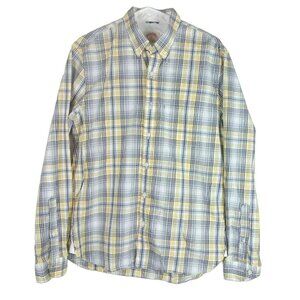 Brooks Brothers Plaid Shirt Button Down Long Sleeve Mens Large Yellow Blue