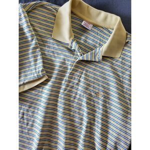 Brooks Brothers Polo Mens L Yellow Blue White Stripe Short Sleeve Cotton Shirt