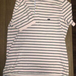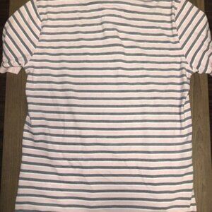Brooks Brothers Polo Mens Pink Gray White Striped Short Sleeve Shirt L Slim Fit