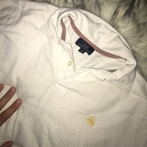White Brooks Brothers Polo Shirt in great condition, with one small mark on the bottom of the shirt that can easily be removed with bleach. Golden emblem.