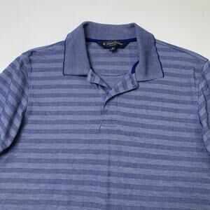 Brooks Brothers Polo Shirt Mens M Medium Blue Slim Fit Striped Short Sleeve Golf