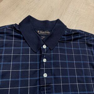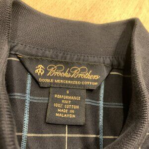 Brooks Brothers Polo Shirt Men's Small S Navy Blue 100% Double Mercerized Cotton Performance Knit Windowpane Checkered Preppy Golf