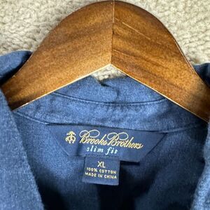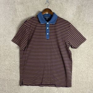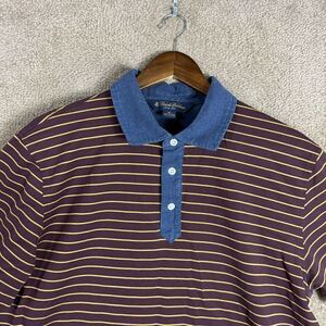 Brooks Brothers Polo Shirt Mens XL Purple/Blue Striped Slim Fit Contrast Collar