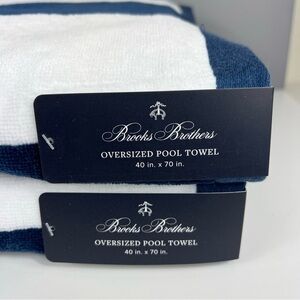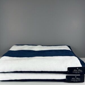Brooks Brothers Pool Beach Towels Navy White Oversized 40 x 70 Striped 2 pc NEW