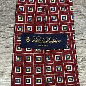 Brooks Brothers Makers Red Blue Geometric Squares Mens 59" Silk Tie USA EUC Necktie Vintage