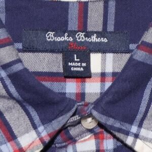 Brooks Brothers Red Fleece Plaid Flannel Shirt Youth Large Blue Cotton Button Up