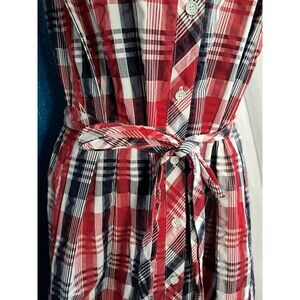 Brooks Brothers Red Fleece Plaid Sleeveless Dress Size 6 Red White Navy