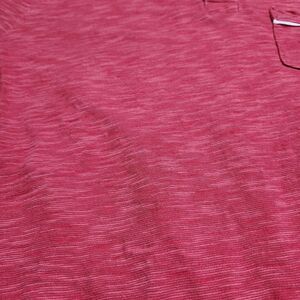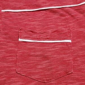 Vivid red heathered polo shirt with white accent piping detail on chest and pocket