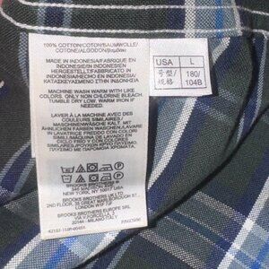 This Brooks Brothers Red Fleece Shirt in Men's size Large features a classic blue plaid pattern, perfect for various occasions such as travel, parties, casual outings, and formal events. Made from woven cotton fabric, this long sleeve button-up shirt has a collared neckline with a button-down collar style. The shirt is from the Brooks Brothers Red Fleece product line, offering a timeless and stylish addition to any man's wardrobe. Easy to care for with machine washable instructions, this shirt is ideal for year-round wear in all seasons.