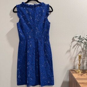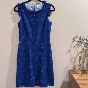 Brooks Brothers Red Fleece Size 2 Blue Floral Lace Lined Sheath Cocktail Dress