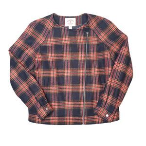 Brooks Brothers Red Fleece Womens Plaid Wool Jacket Asymmetrical Zip Size 12