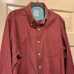 Brooks Brothers Red Green Check Plaid Flannel Cotton Button Down Slim Fit Large