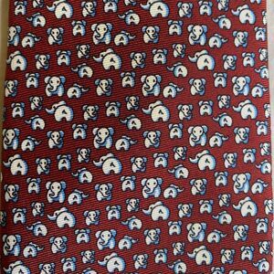 Brooks Brothers Red White Blue Elephant Print Silk Necktie Tie Italian Fabric