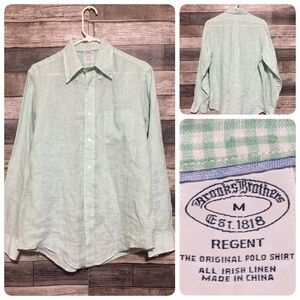 Brooks Brothers Regent Baird McNutt Irish Linen Button Up Shirt Sz M Mint Green
