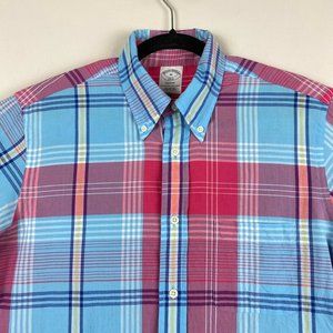 Brooks Brothers Regent Blue Pink Plaid Button Up Shirt Long Sleeve Medium