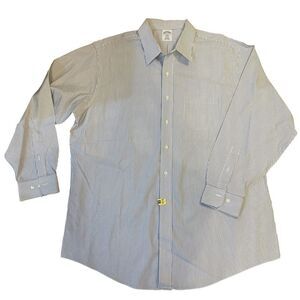 Brooks Brothers Regent Button Down Shirt Non Iron White Blue Stripes Mens 18