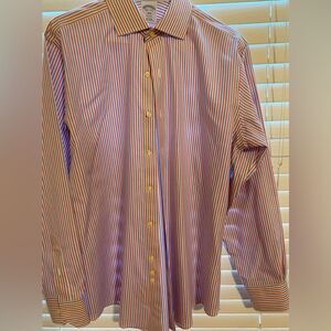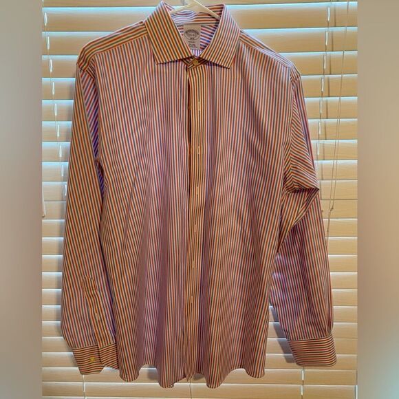 Brooks Brothers Regent Fit Coral Blue Stripe Dress Shirt 15.5 NWOT