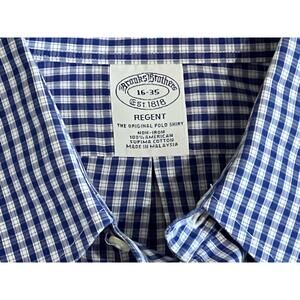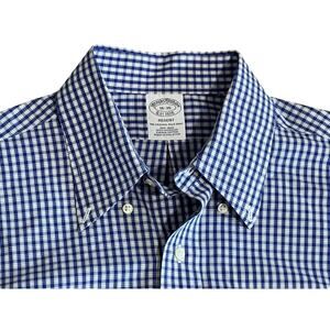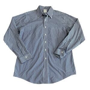 Brooks Brothers Regent Non Iron Shirt Button Down Navy Blue White Check 16-35