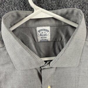 Brooks Brothers Regent Non-Iron 18 37 Check Cotton Gray Office Long Sleeve Shirt