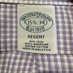 Brooks Brothers Regent Shirt Mens 15 1/5-34 Purple Plaid Button Down Non Iron