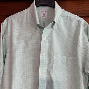 Brooks Brothers Regent Shirt Men's Size 16.5-6/7 Green White Check Long Sleeve