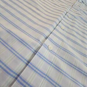Crafted with the discerning dresser in mind, this Brooks Brothers Regent Shirt in size XXL offers a sartorial blend of sophistication and comfort. The shirt boasts a tasteful green and blue checkered pattern, ensuring you stand out with a classic touch of preppy elegance. Its supima cotton fabric provides a luxurious feel with a weave that's equally suited to formal events as it is to casual outings. The shirt features a button-down collar and a regular fit, catering to a variety of occasions from business meetings to social gatherings.