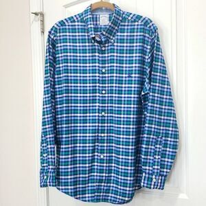 Brooks Brothers Regent 100% Cotton blue/green plaid button down shirt size large