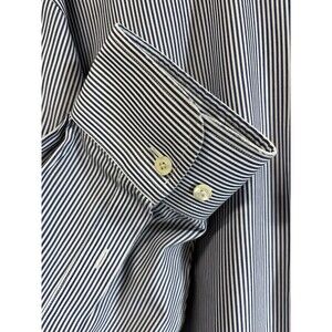 Elevate your formal attire with this Brooks Brothers dress shirt in a stunning blue pinstripe pattern. The shirt features a button-down collar and long sleeves with barrel cuffs, making it perfect for occasions such as weddings, workwear, and business events. Made of 100% cotton, this shirt is comfortable to wear and has a regular fit. The shirt is available in size 17.5 and is suitable for men. The closure is done with buttons and the top cuff style is barrel cuff. This dress shirt is an excellent addition to any wardrobe and is perfect for those who want to look their best at formal events.