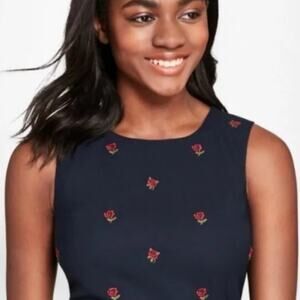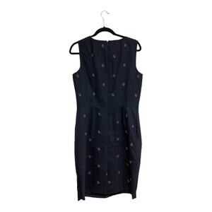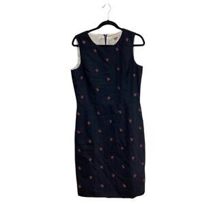 Brooks Brothers Rose Floral Embroidered Navy Blue Dress Womens Sz 10