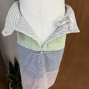 Brooks Brothers Seersucker Colorful Stripe Pencil Skirt in size 0 offers a preppy and stylish option for a career or casual outfit. Made of lightweight cotton fabric, this multicolor skirt features a button closure, zipper accents, and is machine washable for easy care. Lined.