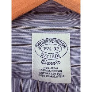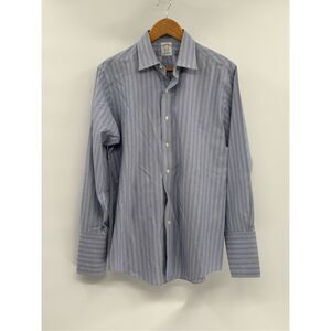 Brooks Brothers Shirt Button Up French Cuff Men 15.5 32 Large Blue Stripe